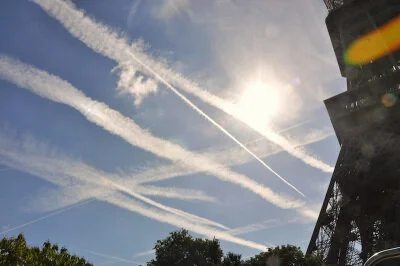 Judging by the contrails in the sky, it is quite busy up there.